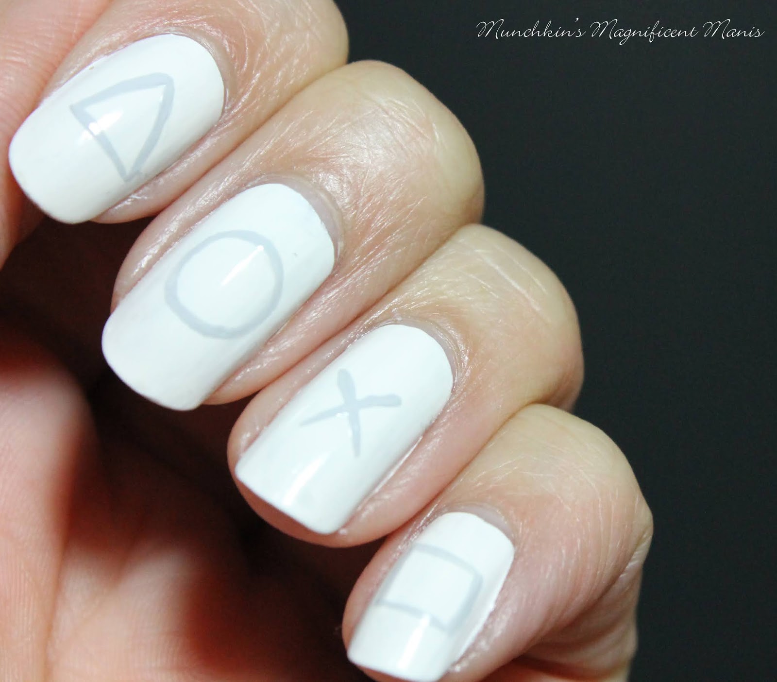 Polish all of your nails white, the same color as the PS5. I know you are probably thinking if you have followed this blog for a while, all white nails! Knowing I hate to polish my nails all white, but unfortunately the PS5 is all white, so I had to polish them all white for this design. 😑